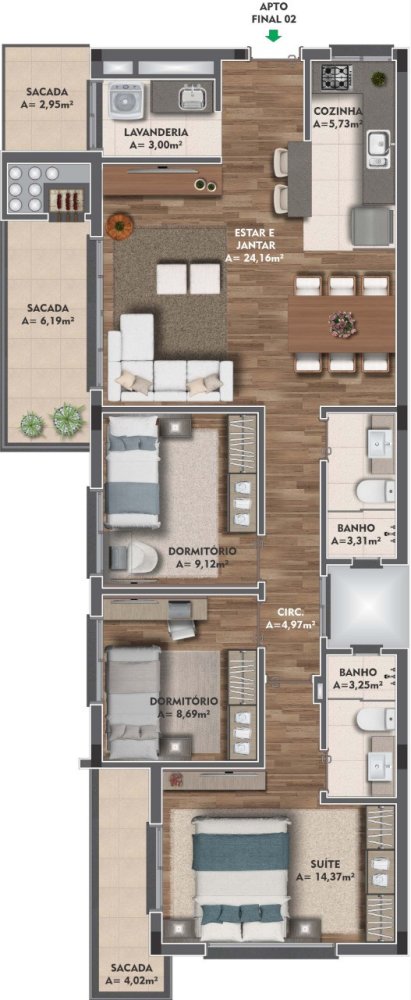 - Área Privativa: 106,59 m²