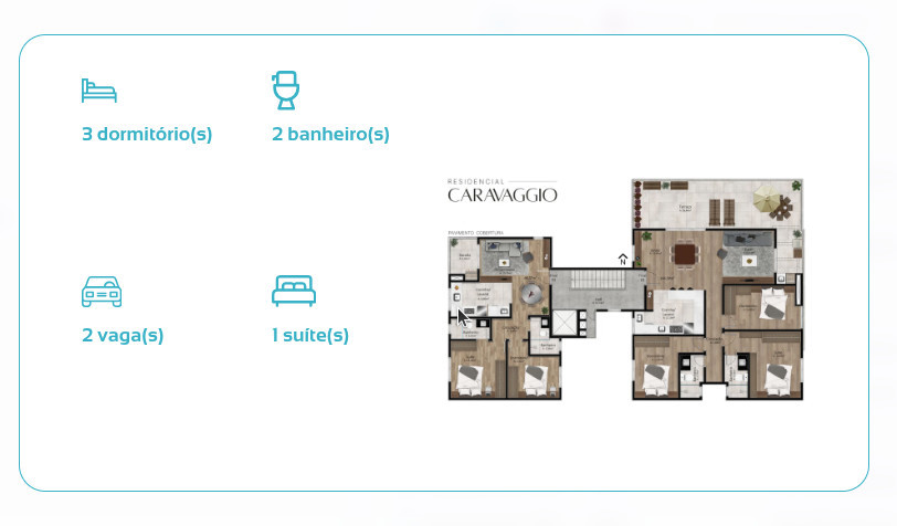 Descubra um projeto pensado para oferecer praticidade, qualidade e bem-estar no dia a dia. O Residencial Caravaggio conta com apenas 11 apartamentos, garantindo um ambiente tranquilo e diferenciado.
