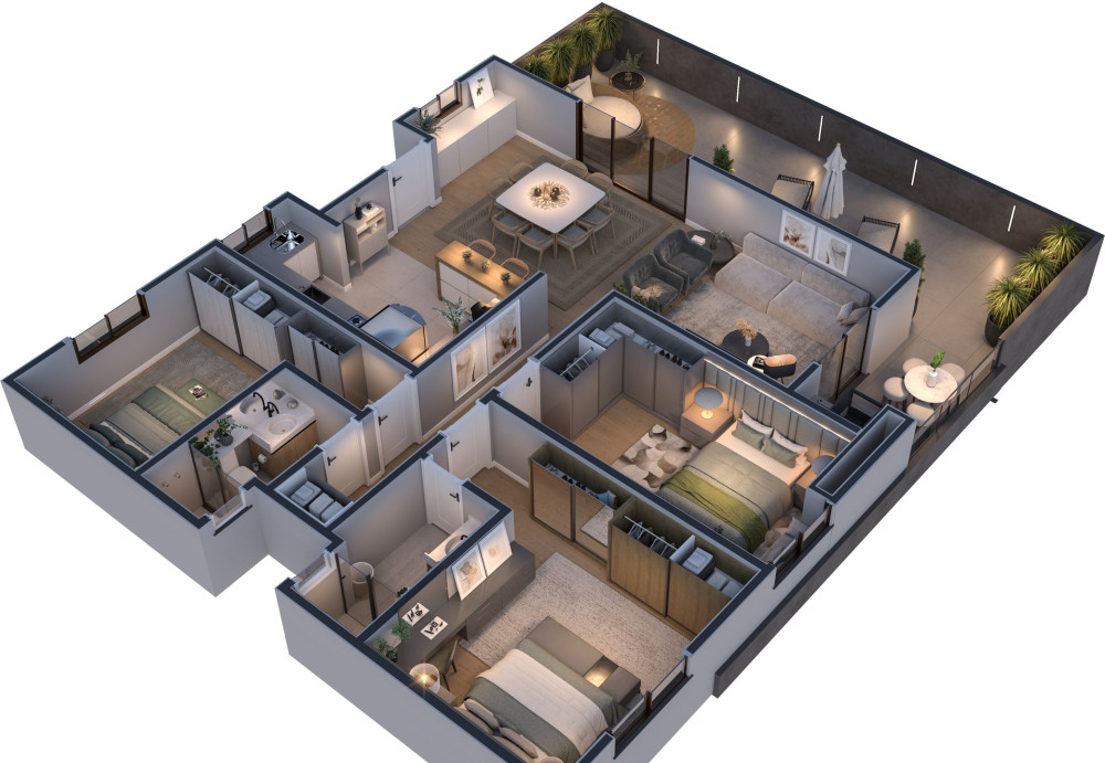 Opções com amplos terraços no 1º andar