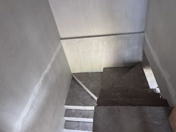 Soleiras em granito e obra toda em concreto, garantindo solidez e qualidade