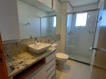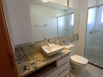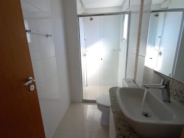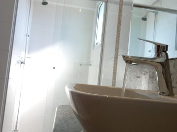 Box de vidro, torneiras monocomando, duchas instaladas
