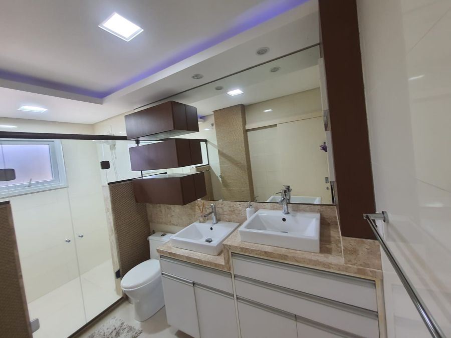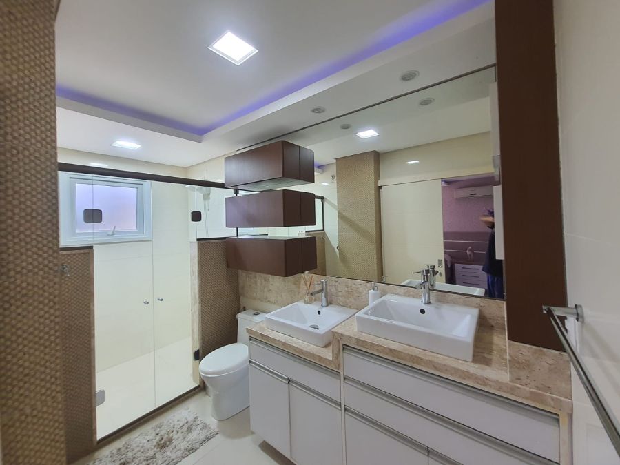 3 dormitórios, sendo 1 suíte dupla com 2 duchas e 2 pias