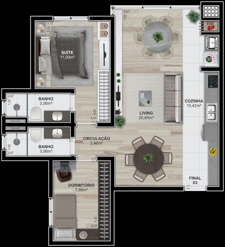 - Área Privativa: 60,50 m²